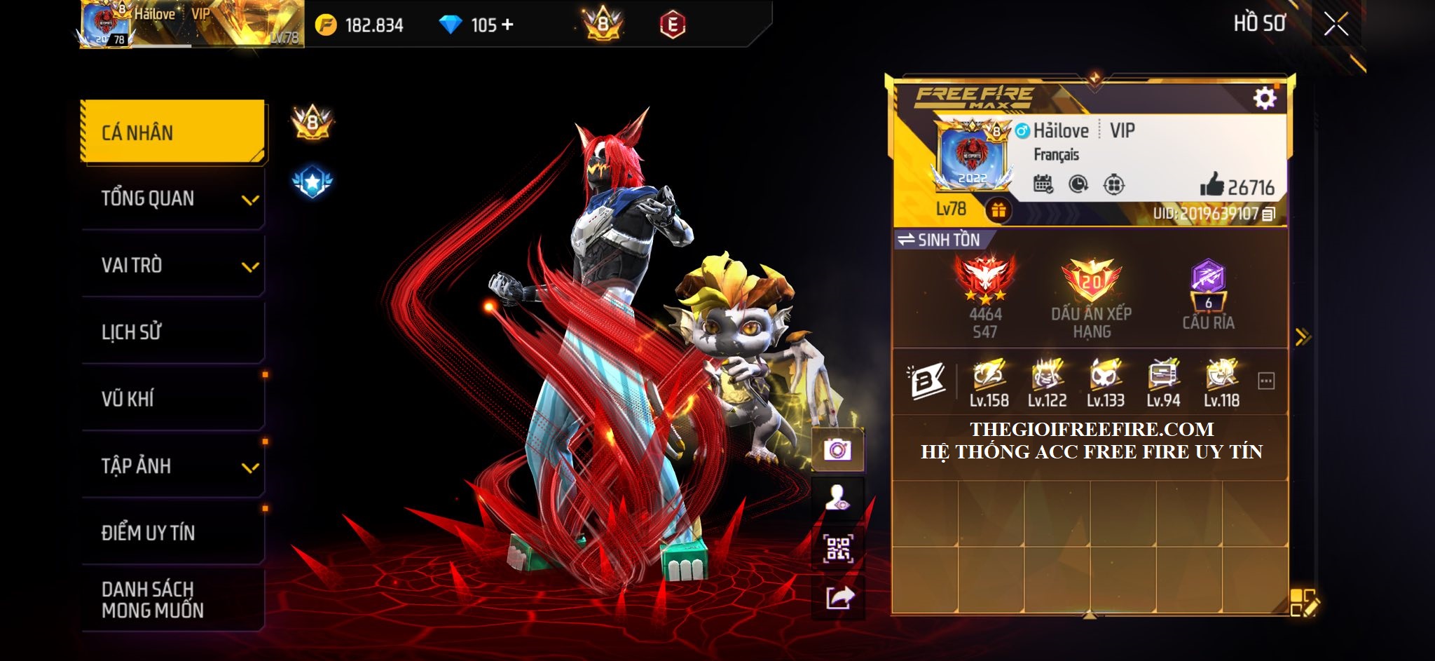 ACC FREE FIRE TỰ CHỌN VIP