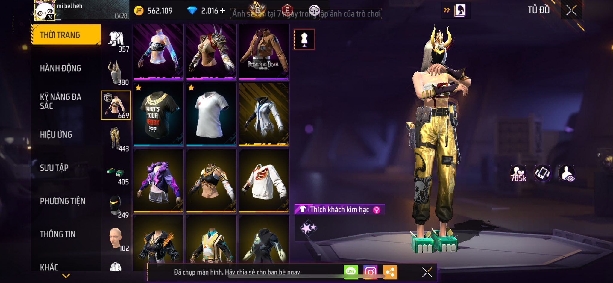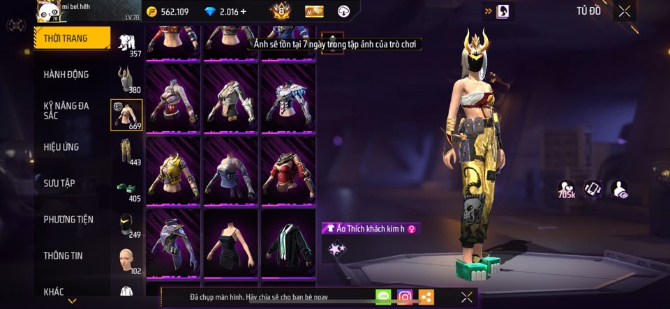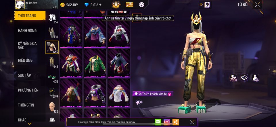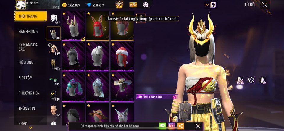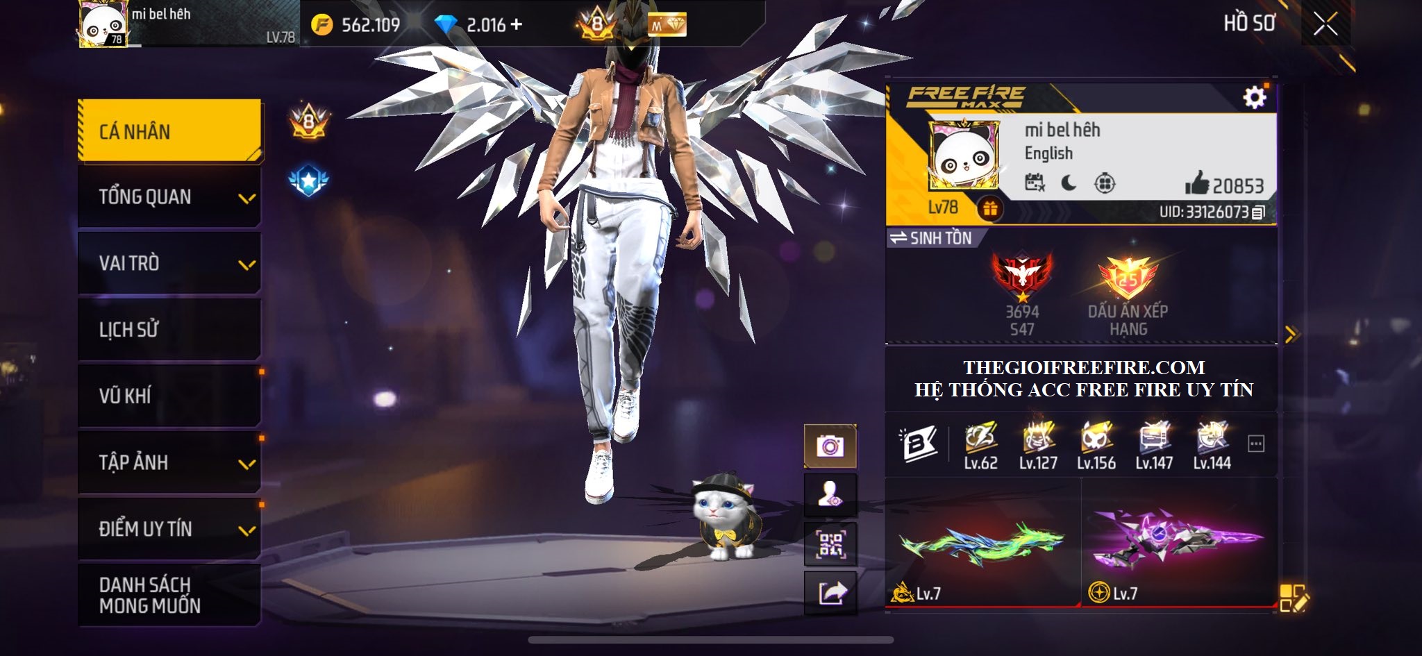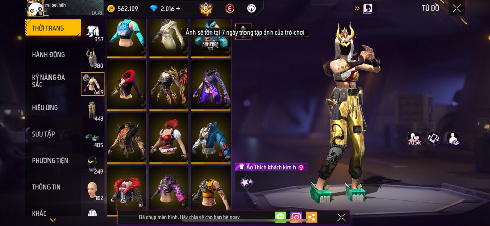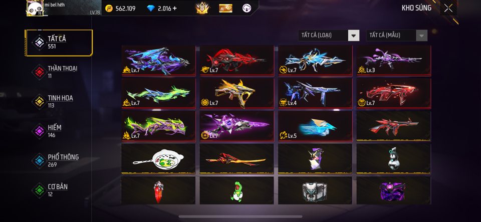ACC FREE FIRE TỰ CHỌN VIP